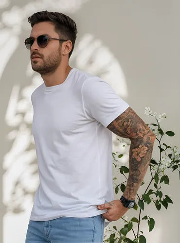 Camisa Básica Masculina Algodão Slim Fit Blusa Premium Lisa - PERFEITA PARA O ANO NOVO 🔥 [ENTREGAMOS ANTES DO ANO NOVO]